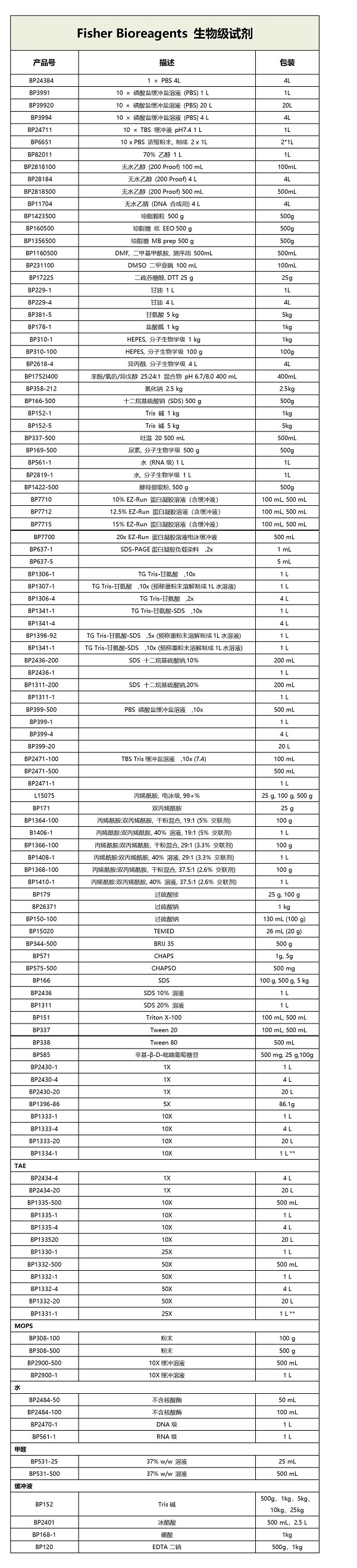 Fisher bioreagents原裝進(jìn)口試劑專注于生命科學(xué)領(lǐng)域,是生物化學(xué)高純?cè)噭┑南刃姓撸徽臼綕M足您生命科學(xué)需求的高質(zhì)量、高純度和預(yù)認(rèn)證試劑。部分熱銷產(chǎn)品: